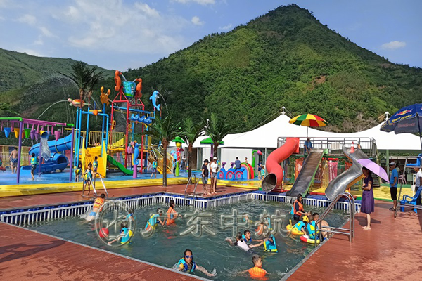 其中水上樂園占水域面積約為2.4萬平方米,由廣東中航水上設施建造有限公司以最新的技術為載體,設計出一座真正在水上的水上樂園;
